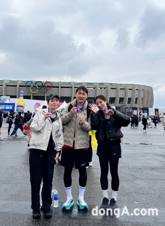대학원 선후배 사이인 양예린(33), 황정민(36), 남성현 씨(40)는 함께 10km 코스를 뛰었다. 왼쪽부터 황정민 씨, 남성현 씨, 양예린 씨. 윤우열 기자 cloudancer@donga.com우정을 다지기 위해 참가한 이들도 많았다. 대학원 선후배 사이인 양예린(33), 황정민(36), 남성현 씨(40)는 함께 10km 코스를 뛰었다. 양예린 씨는 “시작과 동시에 비가 쏟아졌는데, 살면서 이렇게 비를 맞을 일이 얼마나 있겠나. 낭만 치사량을 초과하는 운치 있는 달리기였다”고 말했다. 황정민 씨와 남성현 씨도 “나를 이겨내는 소중한 시간이었다” “힘들면 걷자고 다짐했는데 끝까지 열심히 달린 제 자신에게 박수쳐주고 싶다”고 각각 소감을 전했다.