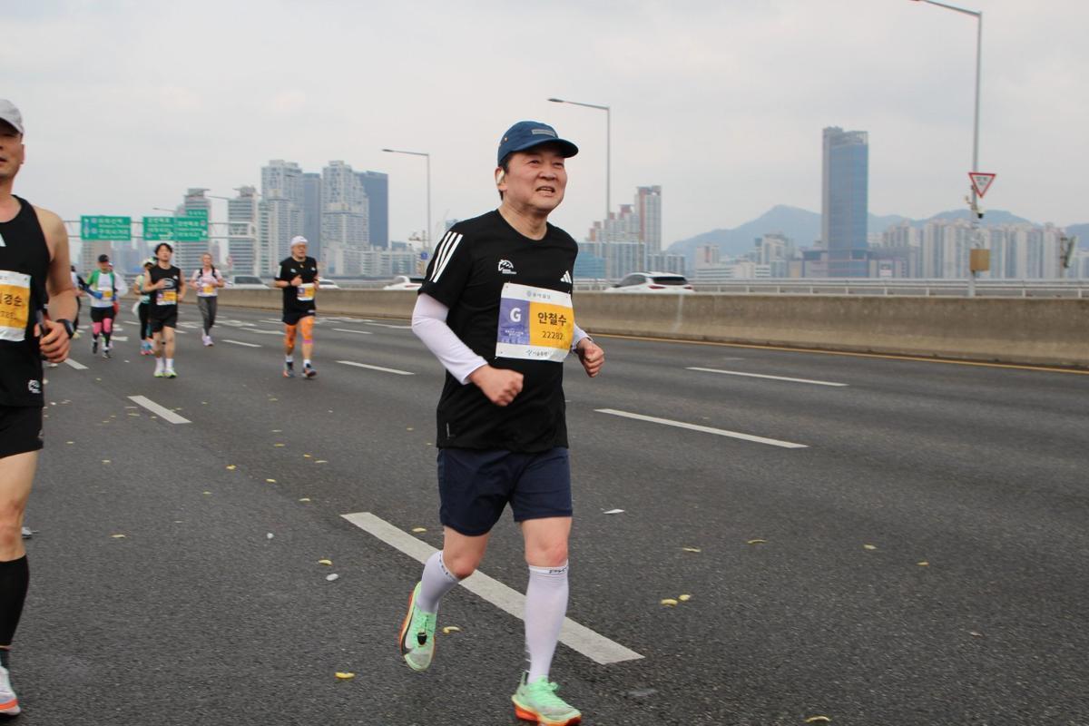 안철수 국민의힘 의원(63)도 풀코스 완주에 성공했다. 안 의원의 6번째 마라톤 풀코스 완주다. 안철수 의원실 제공이밖에 안철수 국민의힘 의원(63), 가수 션(53), 권오갑 HD현대 회장(74) 등이 러너들과 함께했다. 전 세계 65개국에서 온 외국인 3766명도 서울을 누볐다. 국가별로는 중국 국적 참가자가 856명으로 가장 많았다. 홍콩(553명), 일본(468명), 대만(424명) 국적 참가자가 뒤를 이었다.