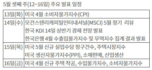 이어서 15일에는 미국의 소매판매와 생산자물가지수(PPI), 산업생산지수 등이 발표됩니다. 시장에서는 4월 소매판매 지표에 촉각을 곤두세우고 있습니다. 전체 경제활동의 대부분을 차지하는 소비자 지출을 포함한 지표이기 때문입니다. 시장에서는 4월 소매판매가 전월 대비 0.1%, 전년 동월 대비 3.4%씩 증가했을 것으로 전망합니다. 관세 전쟁 여파가 반영된 4월 PPI도 꼭 챙겨봐야 할 지표 중 하나입니다.