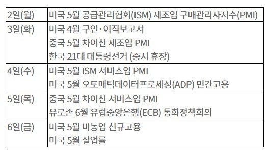 6일에는 미국 노동부의 ’5월 고용보고서‘가 나오는데, 보고서 내용 중 비농업부문 취업자 수와 실업률은 서학개미 투자자들이 반드시 확인해야할 지표입니다. 앞선 4월 취업자 수는 전월 대비 17만7000명 증가하면서 시장의 예상치(13만 명)를 훌쩍 뛰어넘은 바 있습니다. 실업률은 4.2%로 예상된 수준으로 나왔습니다.