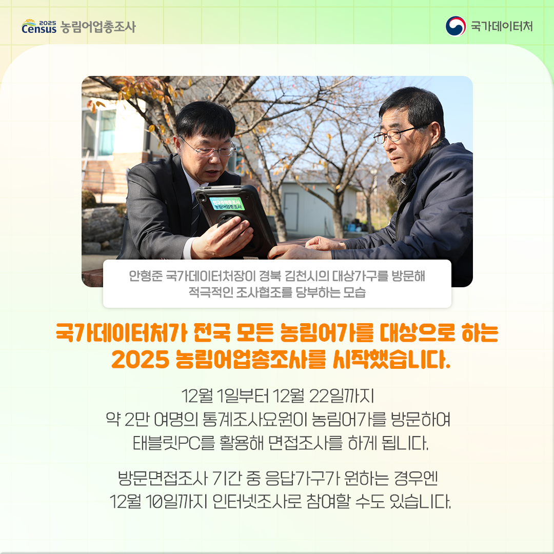 2025 농림어업총조사, 12월 1일부터 전국 농림어가 방문 면접 시작 [카드뉴스]