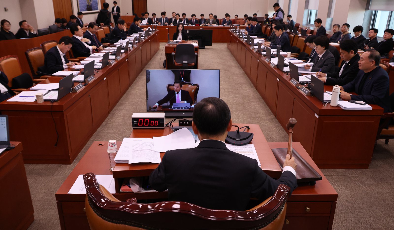 이철규 국회 산업통상자원중소벤처기업위원회 위원장이 21일 오전 서울 여의도 국회에서 열린 전체회의에서 의사봉을 두드리고 있다. 2025.11.21.[서울=뉴시스] ‘주 52시간 근로 시간 예외 적용’ 조항을 뺀 반도체특별법이 4일 국회 산업통상자원중소벤처기업위원회(산자위)를 통과했다.