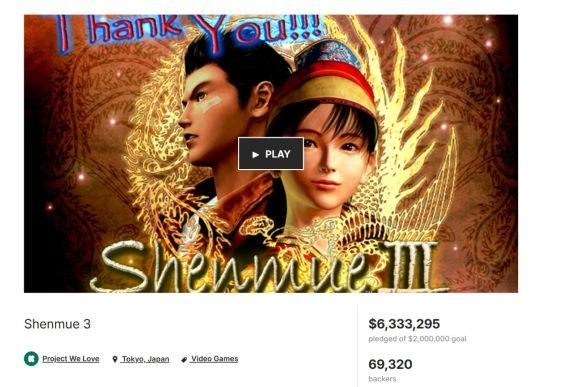 킥스타터 펀딩을 진행했던 쉔무3 / 사진: 킥스타터 홈페이지 캡처