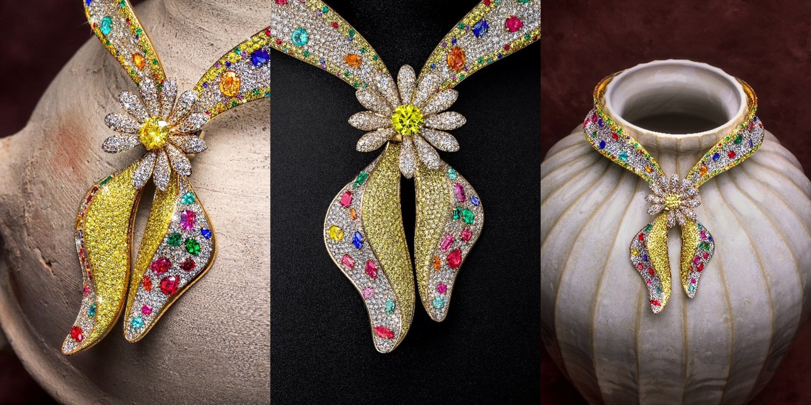 ‘The Bandana Royale’은 지드래곤의 2025 Übermensch 월드 투어 한국 파이널 앙코르 콘서트에서 최초로 공개되며 강렬한 존재감을 드러냈다. 총 209.71캐럿의 젬스톤이 세팅된 이 주얼드 반다나 칼라는 지드래곤의 시그니처 아이템인 반다나를 조형적으로 재해석한 작품으로, 익숙한 실루엣에 하이 주얼리 특유의 혁신성과 예술성을 더한 스테이트먼트 피스로 완성됐다. 유려한 곡선 구조와 전면에 파베 세팅된 다채로운 젬스톤은 아티스트의 다층적인 비주얼 세계를 정교하게 구현하며 강렬한 인상을 남긴다.