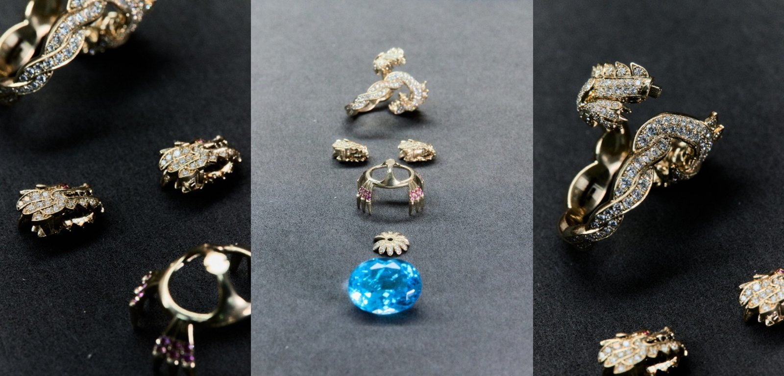 함께 공개된 ‘Blue Topaz Cocktail Ring’은 이번 협업의 미학을 또 다른 방식으로 확장한 작품이다. 희소성이 돋보이는 오벌 쉐입 블루 토파즈를 메인 스톤으로 사용한 이 링은 대담한 컬러감과 볼륨감 있는 실루엣을 통해 제이콥앤코만의 하이 주얼리 아이덴티티를 선명하게 드러낸다. 깊고 선명한 블루 컬러의 메인 스톤은 디자인 전반을 관통하는 핵심 요소로 작용하며, 지드래곤 특유의 자유로운 감성과 실험적인 미학을 시각적으로 표현한다. 용과 데이지 모티브를 활용한 디자인은 화려함과 예술성을 겸비한 하이 주얼리 스테이트먼트로 완성도를 더한다.