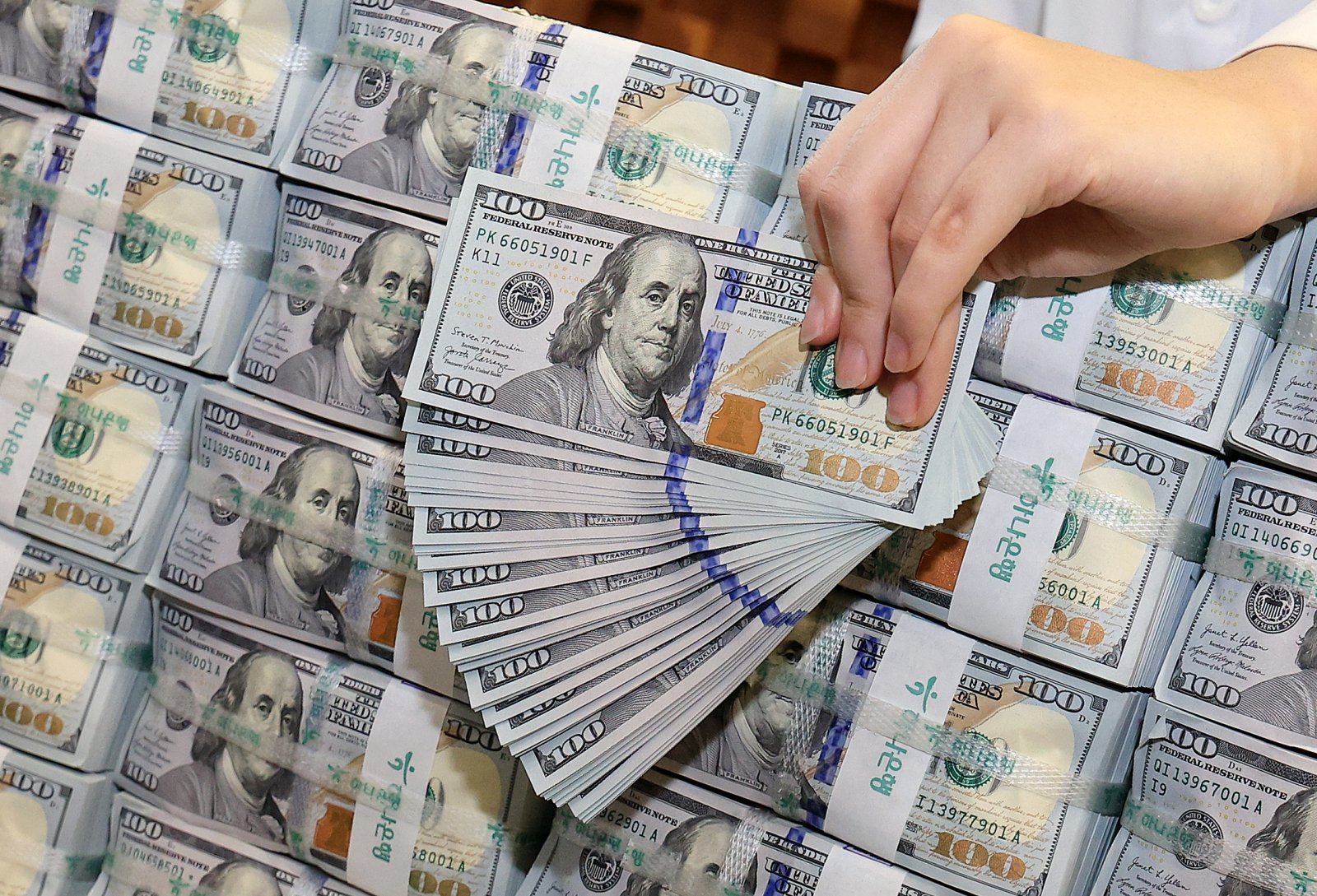 서울 중구 하나은행 위변조대응센터에서 은행 관계자가 달러화를 정리하는 모습. 2025.12.3 뉴스121일 금융투자협회에 따르면 연초 이후 이달 19일까지 외국인의 한국 채권 순매수 규모는 144조1723억 원으로 집계됐다. 이는 지난해 같은 기간 74조1304억 원보다 94.5%(70조419억 원) 증가한 수치다. 특히 원-달러 환율이 고공행진했던 지난달 외국인은 20조3733억 원어치 채권을 사들였다. 순매수 규모가 전월인 10월(2조2429억 원)이 비해 10배 가까이로 급증했다. 이달도 19일 기준 13조4855억 원을 순매수 중이다.