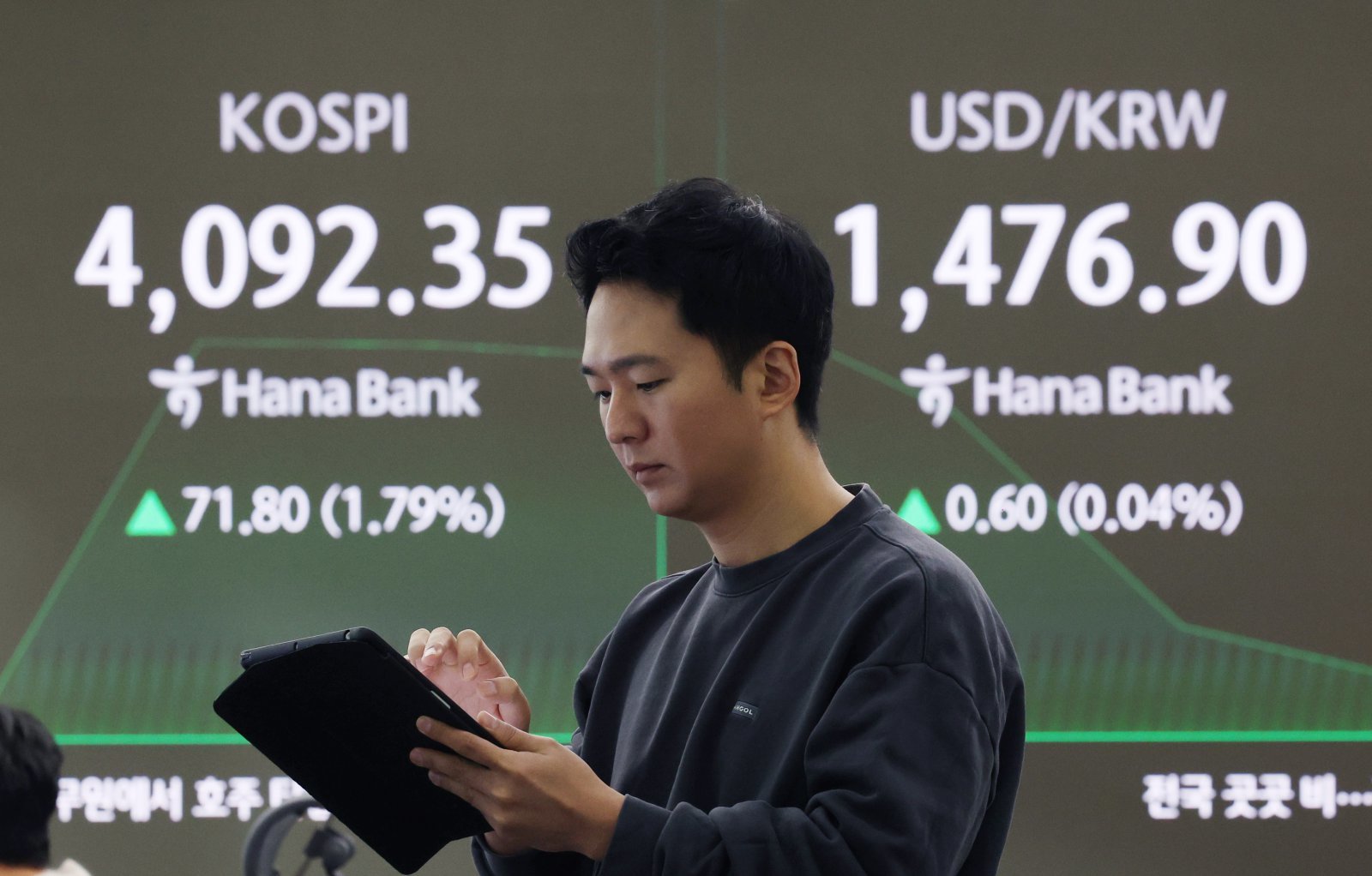 22일 서울 중구 하나은행 딜링룸에서 딜러들이 업무를 보고 있다. 코스피는 전 거래일(4020.55)보다 75.71포인트(1.88%) 상승한 4096.26에, 코스닥 지수는 전 거래일(915.27)보다 8.70포인트(0.95%) 오른 923.97에 거래를 시작했다. 서울 외환시장에서 원·달러 환율은 전 거래일 주간거래 종가(1476.3원)보다 0.3원 오른 1476.6원에 출발했다. 2025.12.22. [서울=뉴시스] 연말을 앞두고 외환당국이 원·달러 환율 안정을 위한 전방위 대응에 나섰다. 글로벌 달러 강세, 엔화 약세, 외국인 자금 이탈 등 복합적인 대외 불확실성 속에서도 당국의 시장 개입 가능성이 환율 상단을 제한할 것이란 전망이 나온다.