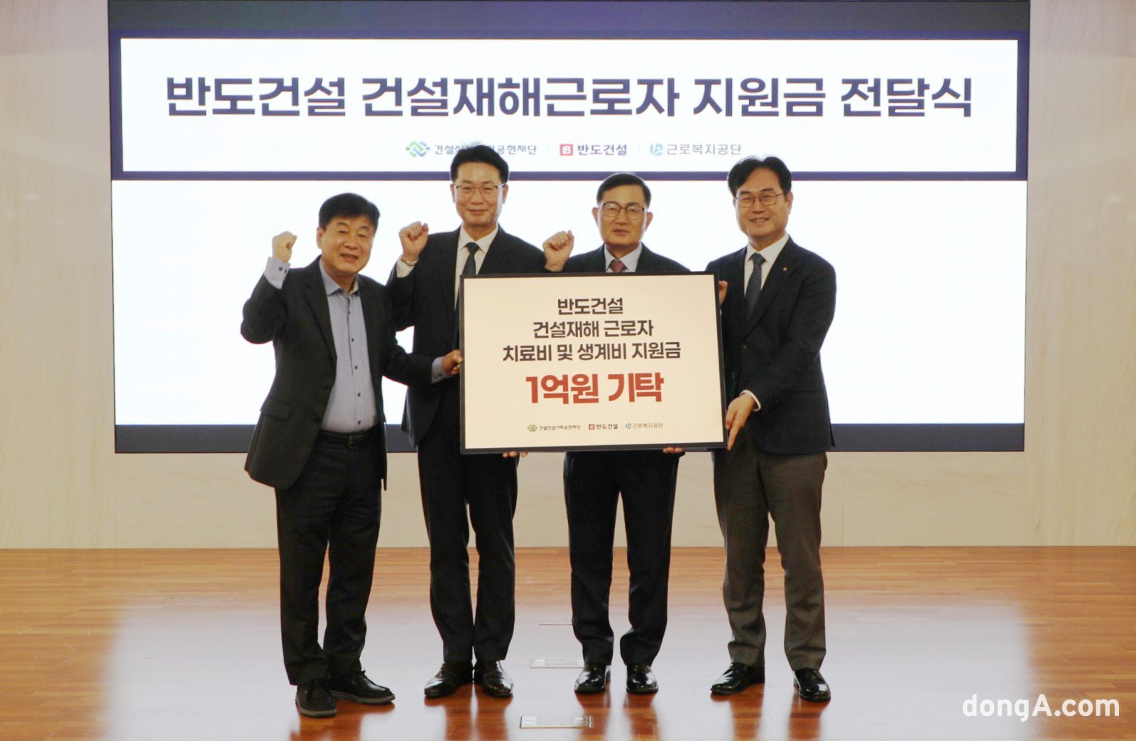 반도건설이 지난 18일 건설현장에서 재해를 입은 근로자를 돕기 위해 치료비·생계비 지원금 1억 원을 기탁했다.