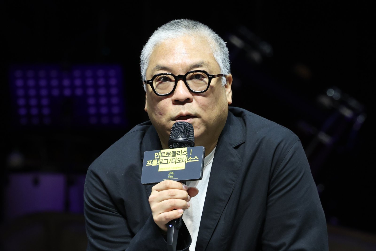 ‘안트로폴리스 5부작’의 1부 ‘프롤로그/디오니소스’(Prolog/Dionysos)‘ 연출 윤한솔이 16일 서울 중구 국립극단 명동예술극장에서 기자간담회를 하고 있다. ’안트로폴리스‘는 고대 그리스 신화 속 ’테베‘ 왕가의 비극을 탐구한 작품이다. 2025.10.16 [서울=뉴시스]국립극단 연극 ‘안트로폴리스 I ―프롤로그, 디오니소스’로 제62회 동아연극상 연출상을 수상한 윤한솔 연출가(53)가 23일 전화 인터뷰에서 이렇게 말했다. 그가 연출한 ‘안트로폴리스…’는 “거친 듯 박진감 넘치는 촌철살인”이라는 평가를 받으며 올해 작품상까지 받아 2관왕을 차지한 작품. 윤 연출가는 “많은 스탭과 배우들이 오랫동안 함께 고생한 작품이기에 더욱 고마운 상”이라며 “관객이 연극을 보는 동안엔 안온한 일상에서 벗어나서 평소 눈여겨보지 않았던 사건과 사람들을 들여다보면 좋겠다”고 말했다.