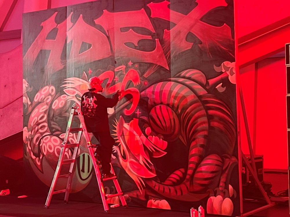 에이치덱스는 시치 작가의 역동적인 라이브 퍼포먼스로 호응을 얻었다 / 출처=IT동아2025 RTS 런웨이의 마지막 무대는 에이치덱스가 장식했다. 에이치덱스는 그래피티 아티스트이자 현대미술가인 시치 작가와 브랜드의 헤리티지 컬렉션 발매를 기념하는 라이브 퍼포먼스를 펼쳤다. 대형 그래피티와 디제잉이 어우러지는 역동적인 무대에 관객들도 뜨거운 반응을 보였다.