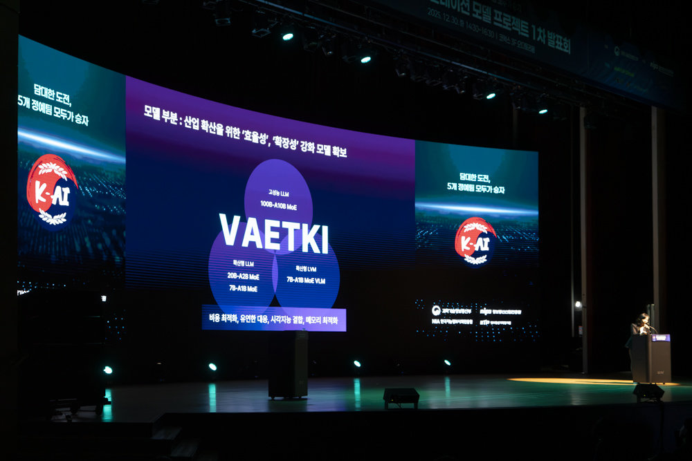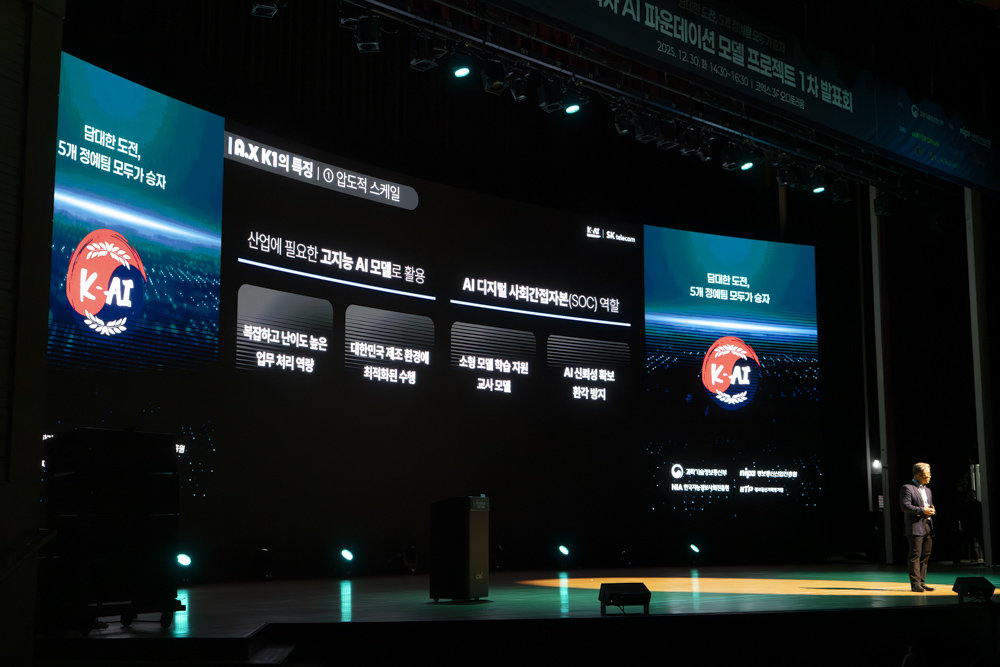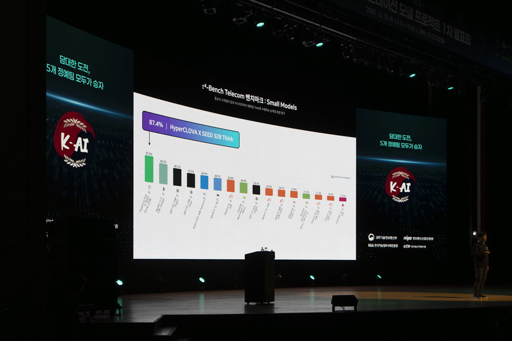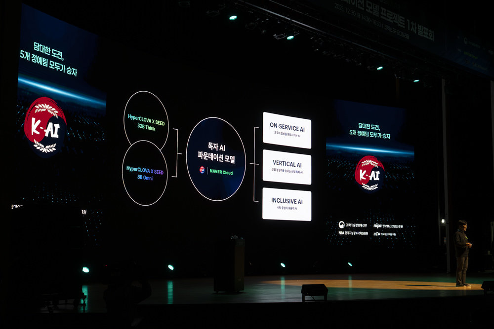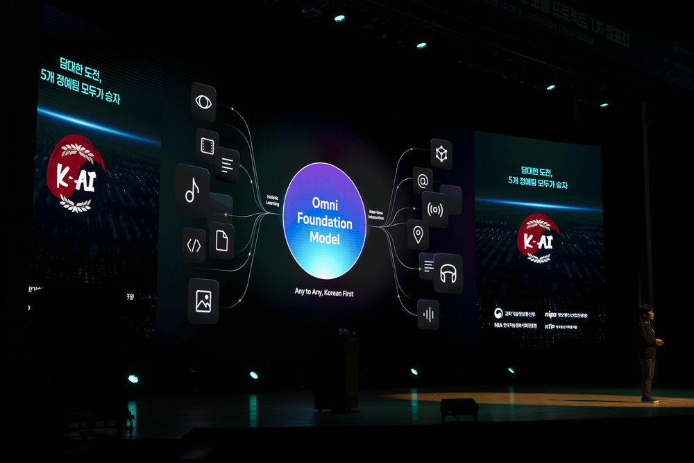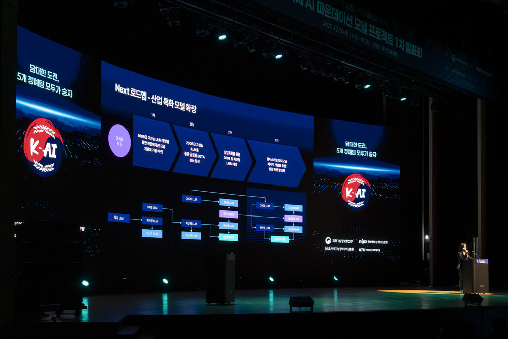 대한민국의 인공지능(AI) 주권을 확보하기 위한 ‘독자 AI 파운데이션 모델’ 사업의 1차 발표회가 12월 30일 서울 삼성동 코엑스에서 개최됐다. 독자 AI 파운데이션 모델은 국가와 기업, 국민을 위한 ‘모두의 AI’를 만드는 사업으로 글로벌 AI 경쟁에서 대한민국이 자체적으로 구축하고 운용할 수 있는 AI 기반을 만드는 게 목표다. 과학기술정보통신부는 지난 8월 네이버클라우드, 업스테이지, SK텔레콤, NC AI, LG AI연구원 다섯 개 컨소시엄을 ‘국가대표 AI 정예팀’으로 선정하고 인프라 및 사업 지원을 제공해 왔다.