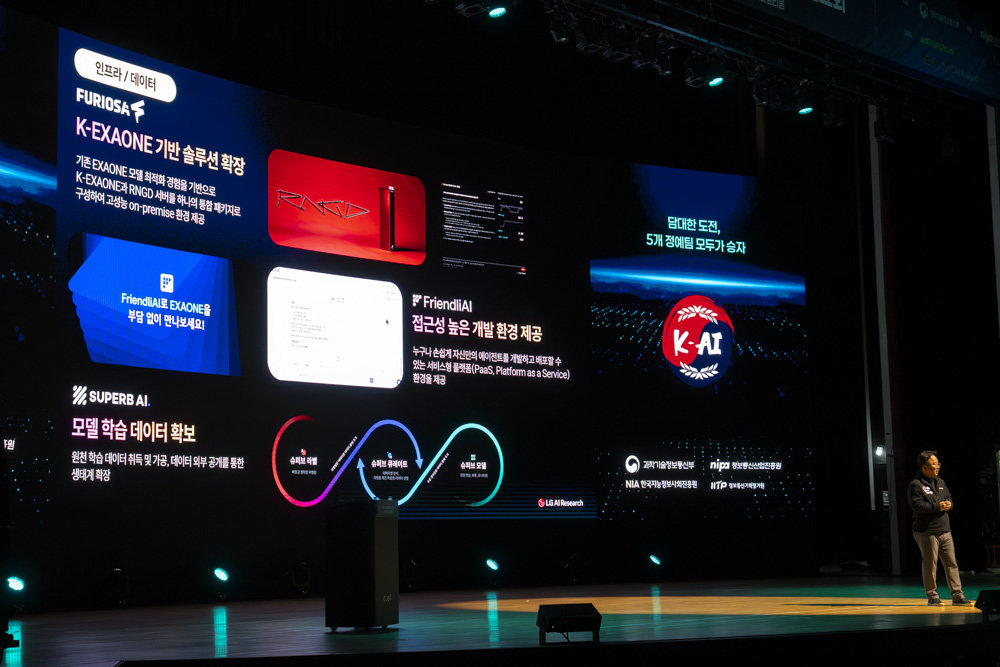마지막으로 최정규 그룹장은 “LG AI 연구원은 퓨리오사AI와 함께 K-엑사원과 RNGD를 하나로 구성한 패키지를 제공하고, 프렌들리AI와는 자신만의 AI를 배포하는 서비스형 플랫폼을 제공한다. 수퍼브AI는 원천학습 데이터 취득 및 가공 등으로 생태계를 확장한다. 내년 1월 중 프렌들리AI를 통해 무료로 K-엑사원이 배포되니 많은 이용 바란다”라고 말했다.