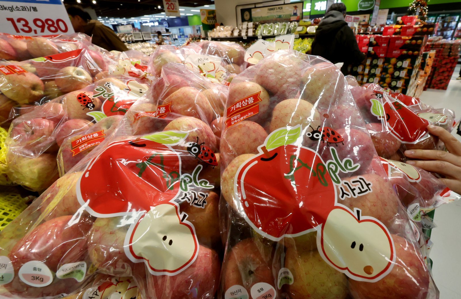31일 서울의 한 마트에서 시민이 사과를 구매하고 있다. 2025.12.31 뉴스1사과(19.6%), 귤(15.1%) 등 과일이 많이 올랐다. 올해 가을비가 많이 내려 작황이 부진했던 영향 때문이다. 쌀(18.2%)은 재배면적 축소에 따른 생산량 감소로 가격이 올랐다. 고환율로 수입 물가가 올라 전체 먹거리 물가가 뛰었다. 고등어(11.1%), 바나나(6.1%), 망고(7.2%), 커피(7.8%) 등 수입 비중이 높은 먹거리를 중심으로 가격 상승률이 높았다.