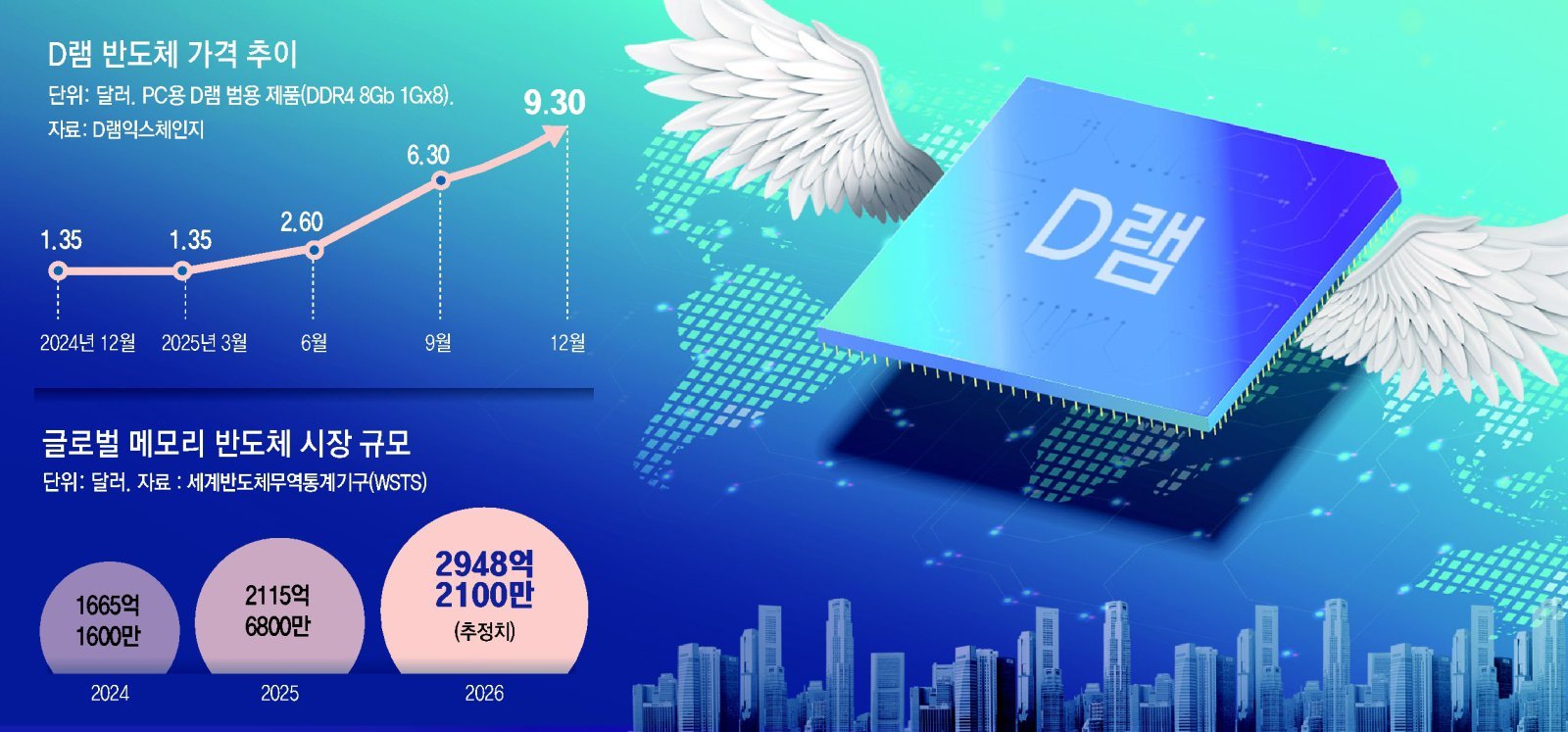 글로벌 빅테크 기업들이 AI 데이터센터 투자를 확대하면서 D램과 HBM, 낸드플래시 등 메모리 반도체 수요가 빠르게 늘고 있다. 반면 공급은 이를 따라가지 못해 반도체 확보 경쟁이 심화되고, 가격 상승세도 이어지고 있다.