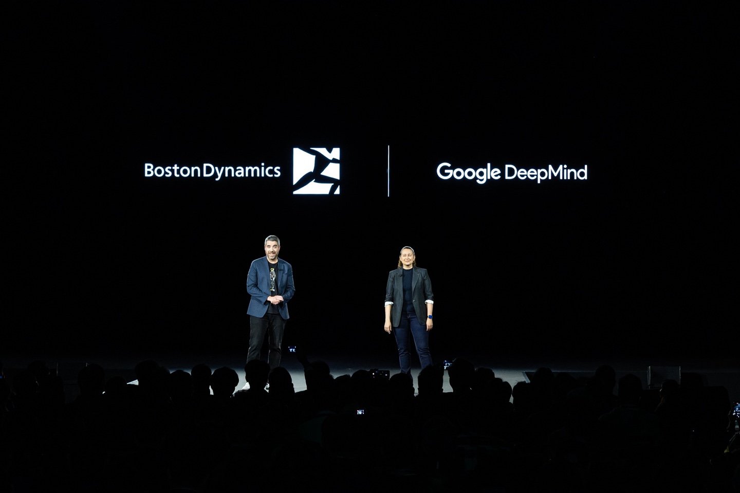 5일(현지시간) 미국 라스베이거스 만달레이베이 컨벤션센터에서 열린 현대자동차그룹의 프레스콘퍼런스에서 보스턴다이내믹스의 ‘차세대 전동식 아틀라스 연구형 모델’이 보다 산업 현장에 적합하게 설계된 ‘차세대 전동식 아틀라스 개발형 모델’을 우스꽝스러운 포즈로 소개하고 있다. 현대차그룹 제공현대차그룹은 구글 산하 인공지능(AI) 조직 딥마인드와의 전략적 파트너십도 발표했다. 구글 딥마인드는 생성형 AI 모델 ‘제미나이’를 기반으로 로봇 AI 파운데이션 모델 ‘제미나이 로보틱스’를 개발해 왔다. 양사는 보스턴다이내믹스의 로보틱스 경쟁력과 딥마인드의 ‘AI 두뇌’를 결합해 피지컬 AI를 선도하겠다는 구상이다. 장재훈 현대차그룹 부회장은 “(피지컬 AI 경쟁력 확보와 관련)글로벌 협업이 제일 중요하다. 업계 선두와 연합해 빠르게 개척하고 위치를 확보해야 한다”고 강조했다.