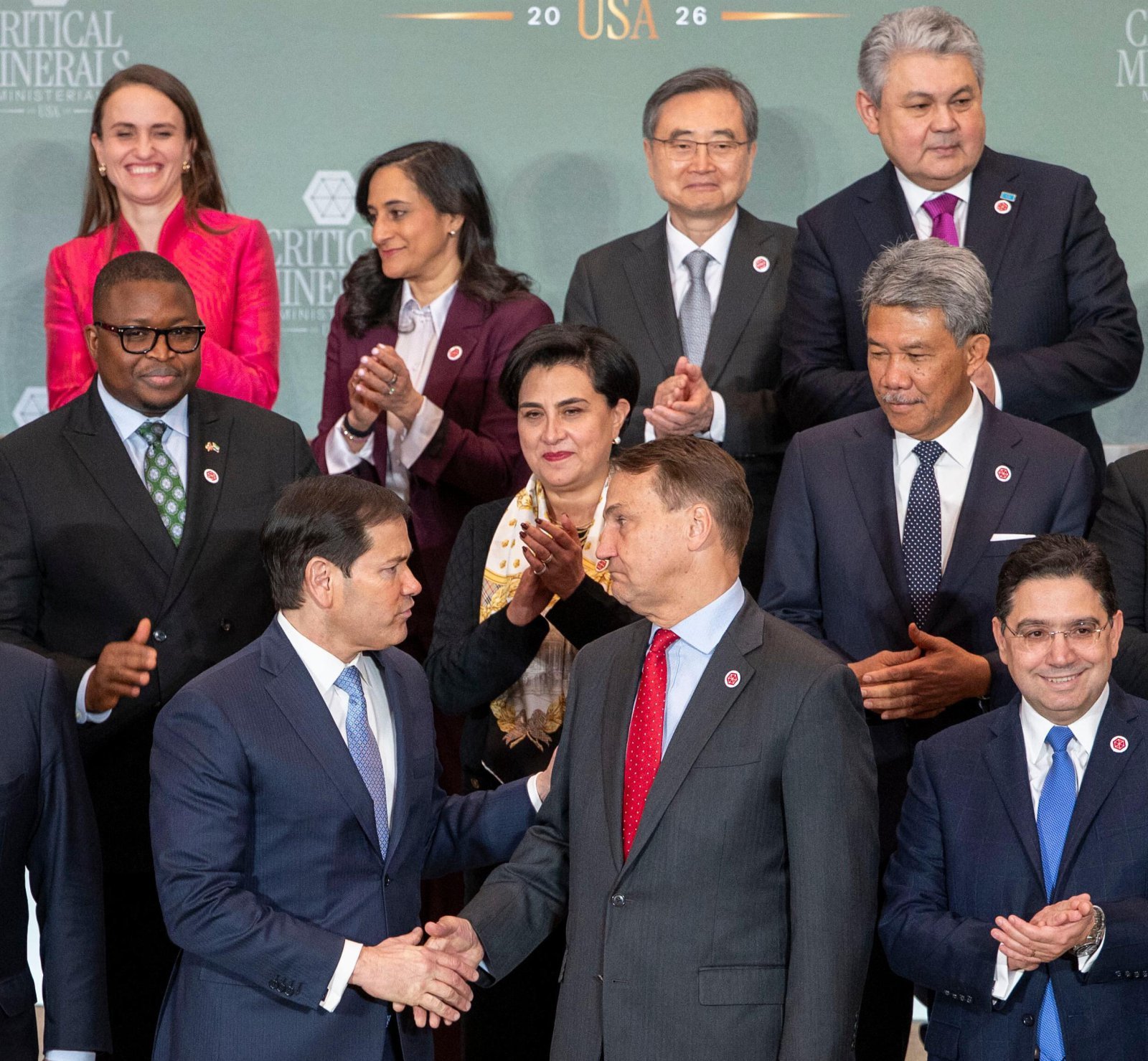 마코 루비오 미국 국무장관(아랫줄 왼쪽)이 4일(현지 시간) 워싱턴에서 라도스와프 시코르스키 폴란드 외교장관(아랫줄 가운데)과 악수하고 있다. 조현 외교장관(맨 윗줄 오른쪽에서 두 번째)이 지켜보며 박수를 치고 있다. 이날 미국은 동맹, 우방국을 중심으로 중국의 희토류 무기화에 맞서 핵심광물 공급망 개선 등을 위한 글로벌 협의체 ‘포지 이니셔티브’를 출범하겠다고 밝혔다. 워싱턴=AP 뉴시스“그들(중국)이 세계에서 유일한 (핵심광물) 공급자가 되면, 가격을 마음대로 매길 뿐 아니라 압박 수단으로 활용할 수도 있다.”