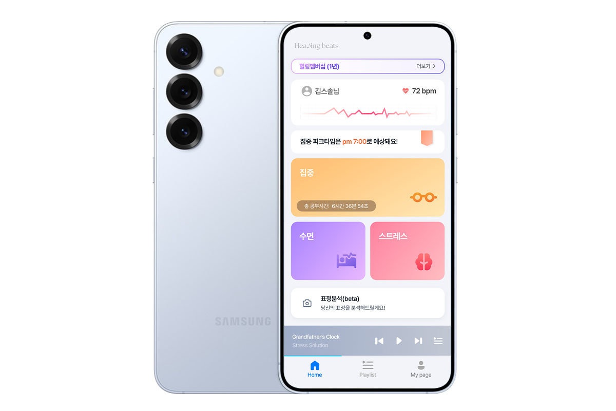 스트레스솔루션의 힐링비트 애플리케이션 / 출처=스트레스솔루션스트레스솔루션의 다른 차별점은 인공지능(AI) 카메라 기반 rPPG(remote PhotoPlethysmoGraphy) 기술이다. 얼굴 영상만으로 3초만에 HRV 데이터를 측정하고 맞춤형 사운드를 생성한다. 광혈류 측정 기술을 활용해 피부색 변화로 심박을 감지하는 방식이다. 웨어러블 기기 없이도 비접촉 방식으로 정밀한 생체신호 측정이 가능해, 접근성을 크게 높였다. 측정 후에는 수면, 집중력 향상, 스트레스 완화 등 사용자 상태에 맞춰 개인화된 사운드가 생성된다. 삼성 갤럭시 워치, 애플 워치 등 웨어러블 기기는 접촉 방식으로 정보가 연동돼 언제 어디서나 자신의 자율신경 상태를 확인하고 관리 가능하다.