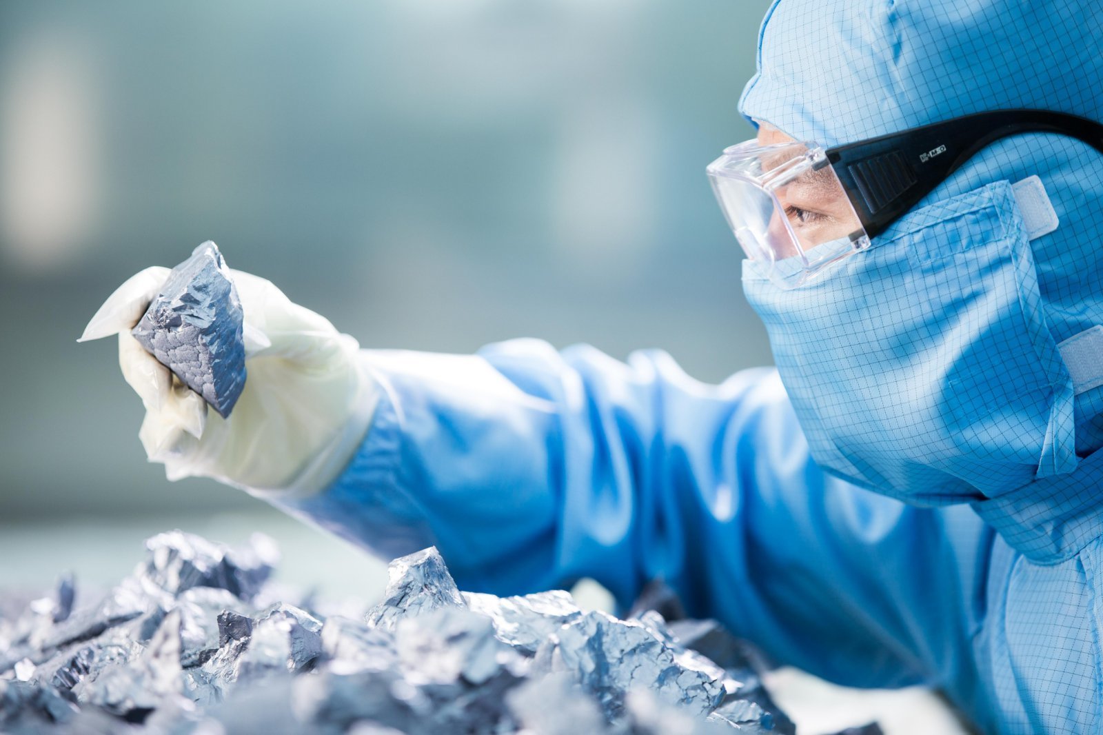 OCI TerraSus의 연구원이 폴리실리콘 칩을 살펴보고 있다. OCI홀딩스 제공11-Nine급 초고순도 폴리실리콘…친환경 수력발전으로 생산