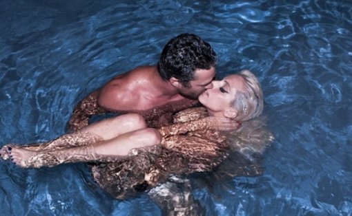 사진 속 가가는 물속에서 알몸인채로 테일러 키니의 품에 안겨 키스를 나누고 있다.