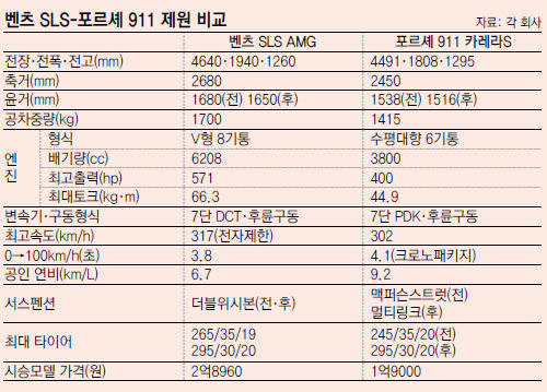 [CAR/석동빈 기자의 DRIVEN]벤츠 SLS vs 포르셰 911 카레라S