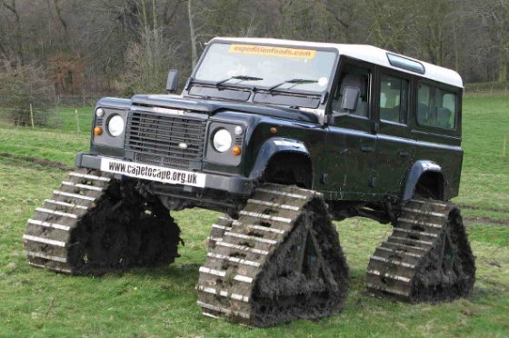 사진=무한궤도(tracked) 랜드로버, 볼드라이드(boldrde)“이 차량은 포드F150 랩터 트랙스(TRAX)와 견줄 수 있는 차량이다. 포드F150 랩터 트랙스는 자동차 랠리 드라이버 켄 블록(Ken Block)이 지난 1월 포드 F150픽업트럭을 개조해 겨울철 오프로드 버전으로 공개한 것이다.”