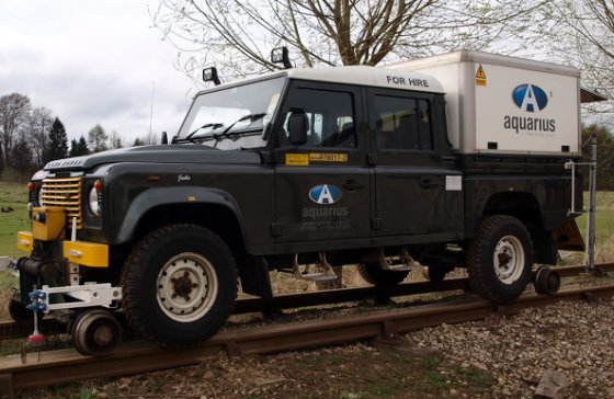 사진=랜드로버 레일로버, 볼드라이드(boldrde)“영국은 철로를 점검하고 기차의 위치를 바꾸는데 사용하기 위해 수차례에 걸쳐 철로 위를 달리는 랜드로버 개발에 힘썼고 그 결과 이 차량을 완성했다. 사진에 보이는 차량은 두 번째 타입으로, 레일 바퀴가 차량에서 분리됐고 무게가 너무 가벼워 안전상에 문제가 있었다. 이것을 개선해 현재까지도 사용되고 있다.”