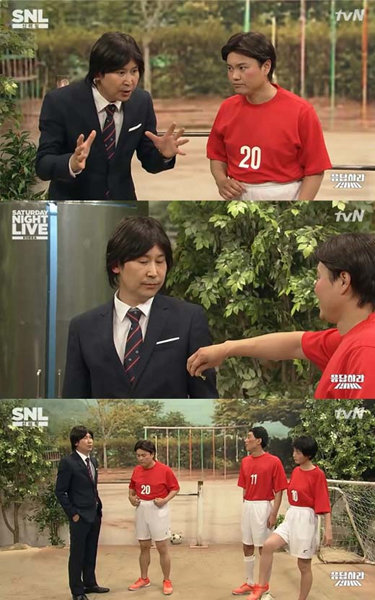 이날 방송에서는 'SNL 코리아' 출연진들이 과거 젊은 시절의 홍명보와 2014년 홍명보가 만