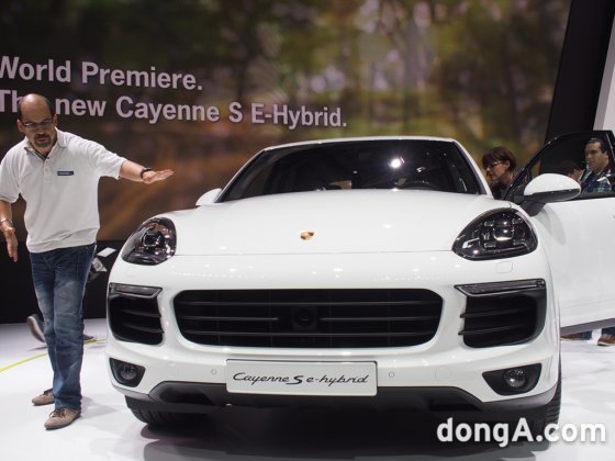 포르쉐가 2014 파리모터쇼에서 플러그인 하이브리드 기술을 적용한 카이엔 S E-하이브리드를 선보였다.