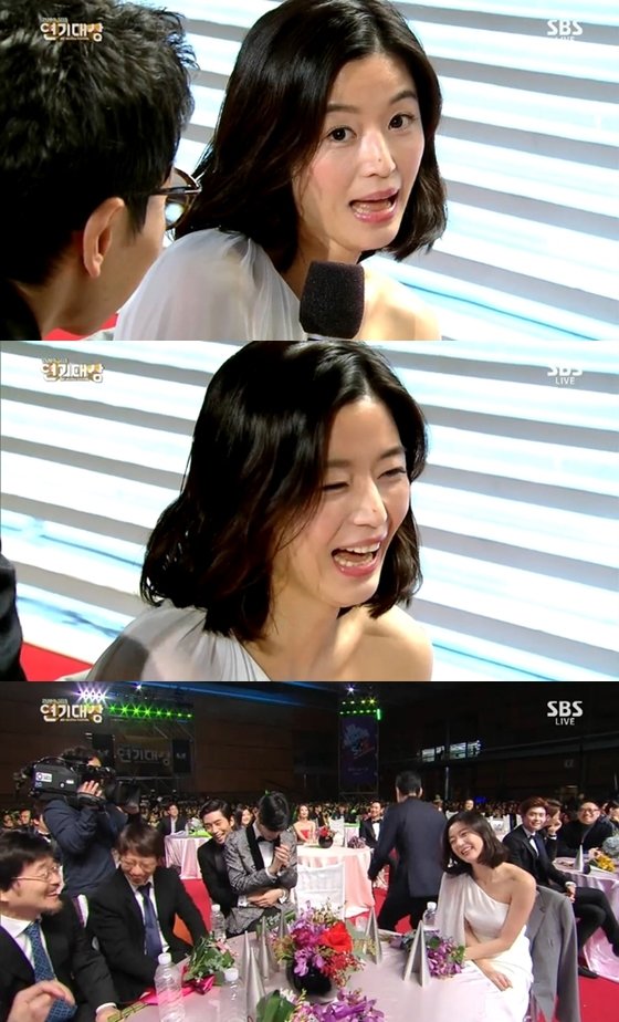 전지현 애교에 누리꾼들은 "전지현 애교 대박, 남편 전생에 나라 구했나" "전지현 애교, 대상도 축하해요" "전지현 SBS 연기대상 대상 '별그대' 최고"등의 반응을 나타냈다.