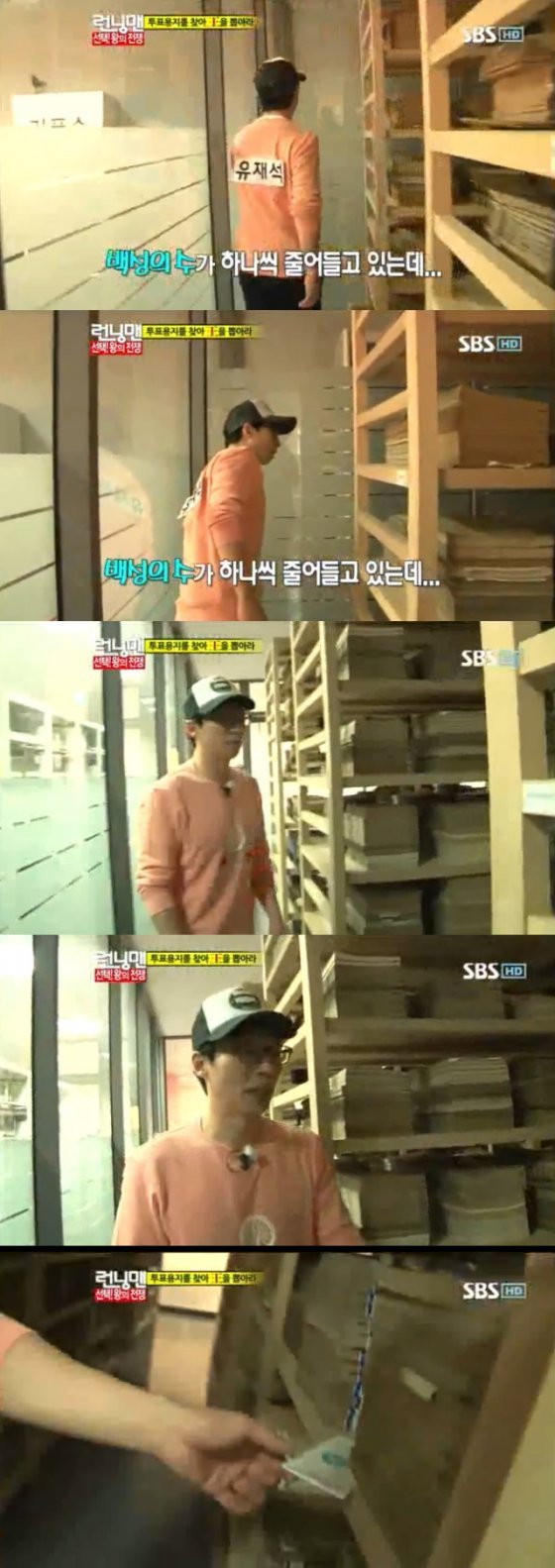 유재석은 도서관에서 투표용지를 찾던 중 자신을 뒤따라오는 VJ에게 "책 다치지 않게 조심해"라고 말해 보는 이들의 마음을 훈훈하게 했다.