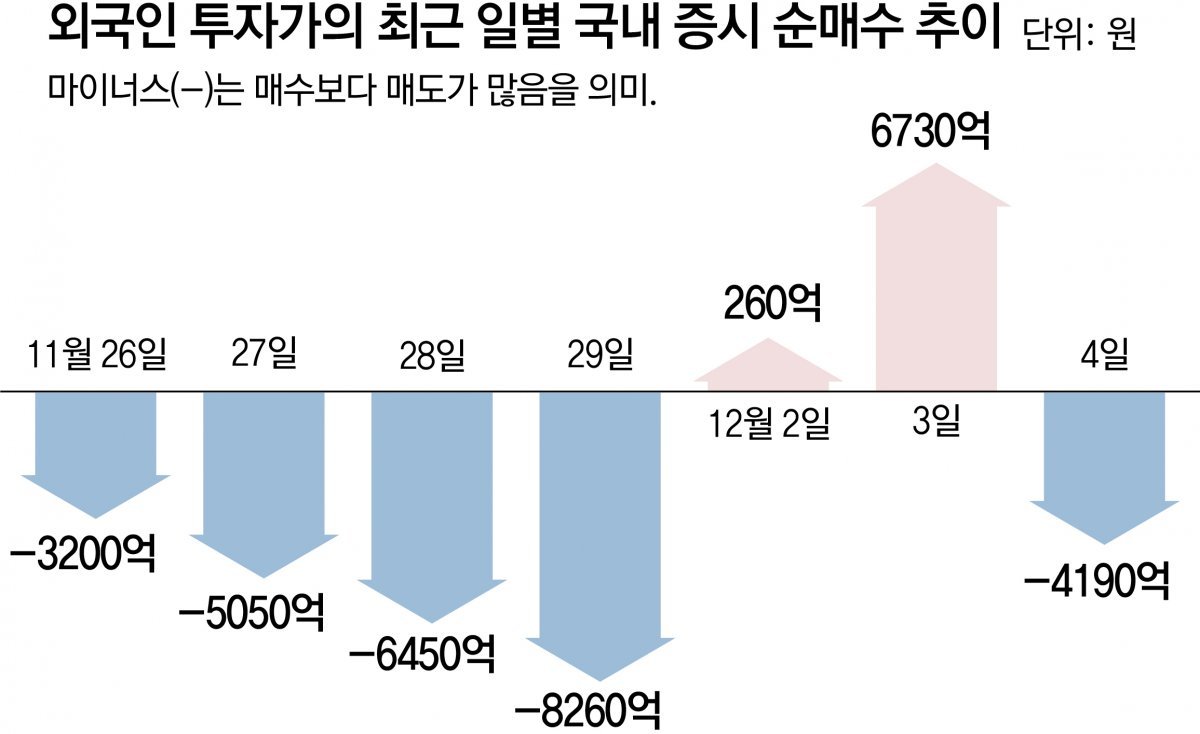 이번 비상계엄 사태가 그동안 어렵게 쌓아올린 한국 경제의 대외 신인도를 떨어뜨릴 수 있다는 우려가 커지고 있다. 당장 4일 유가증권시장에서 한국의 정치 불안에 질린 외국인은 4000억 원 이상의 주식을 팔아 치웠다. 증시 밸류업을 추진하던 정부가 도리어 ‘코리아 디스카운트’를 조장하고 있다는 지적도 나온다.