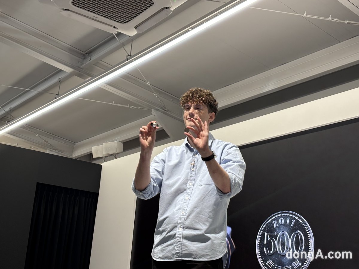 나단 로슨 맥클린 다이슨 시니어엔지니어링 매니저가 펜슬백 기자간담회에서 설명하고 있다. 황소영 기자 fangso@donga.com