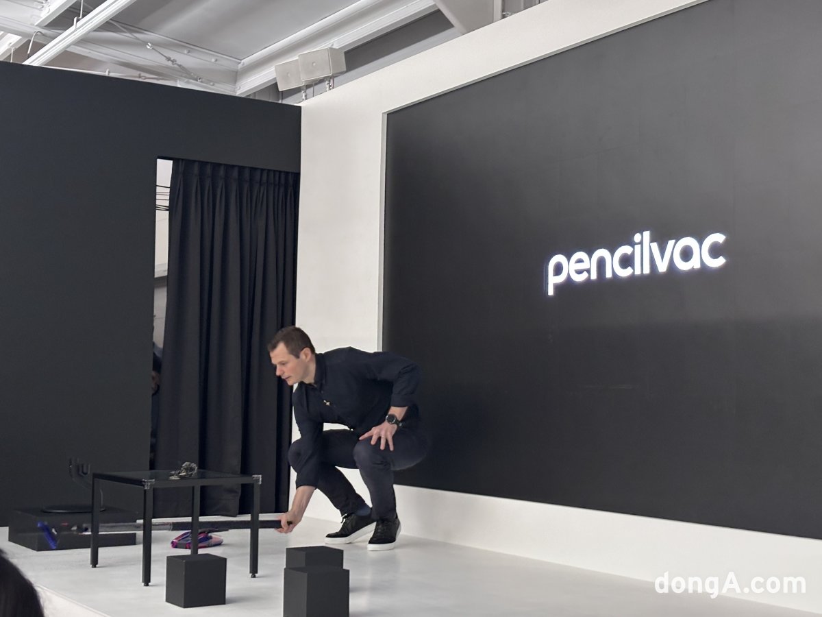 톰 무디 다이슨 홈부문 글로벌 총괄이 간담회에서 펜슬백을 설명하고 있다. 황소영 기자fangso@donga.com