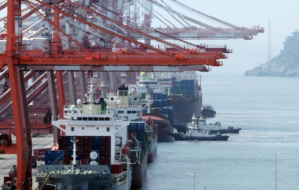 1일 산업통상자원부가 발표한 ‘5월 수출입 동향’에 따르면 지난달 수출은 전년 동기 대비 1.3% 감소한 572억7000만 달러(79조2502억원)로 집계됐다. 이는 미국 정부의 관세 부과 충격으로 자동차와 석유화학 등 15대 품목 중 10개 품목의 수출이 줄어들면서 4개월만에 수출 감소세를 기록한 것이다. 이날 부산 남구 신선대부두에 컨테이너선이 접안하고 있다. 2025.06.01. [부산=뉴시스]