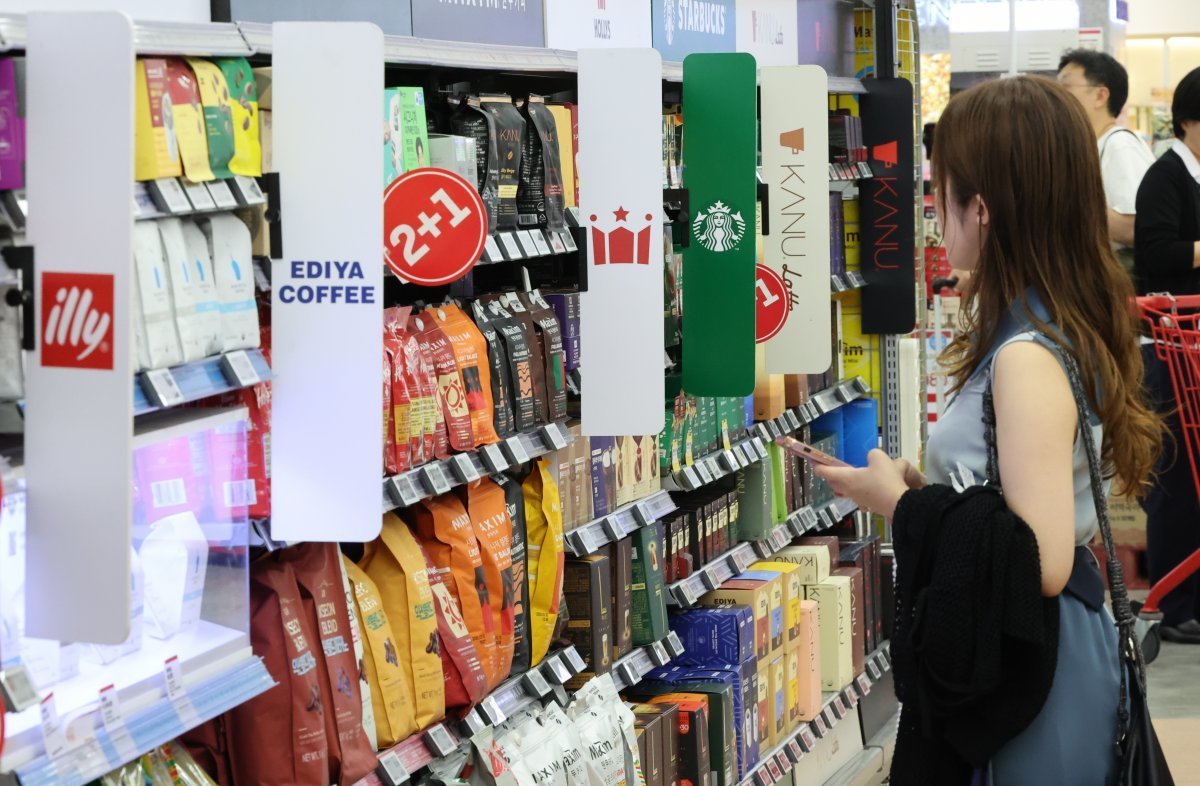 지난달 9일 서울 시내 한 대형마트에서 소비자들이 커피를 고르고 있다. 서울=뉴시스소비자물가 상승률이 두 달 만에 다시 2%대로 올라섰다. 중동 분쟁으로 석유류 가격이 오름세로 전환했고 가공식품이나 축산·수산물, 외식 가격 등이 4%대 이상 올라 서민들 주머니 사정이 팍팍해졌다.
