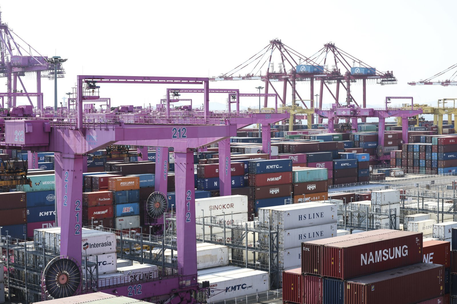 1일 오후 인천 연수구 인천신항 야적장에 컨테이너가 놓여 있다. 2025.02.01 인천=뉴시스