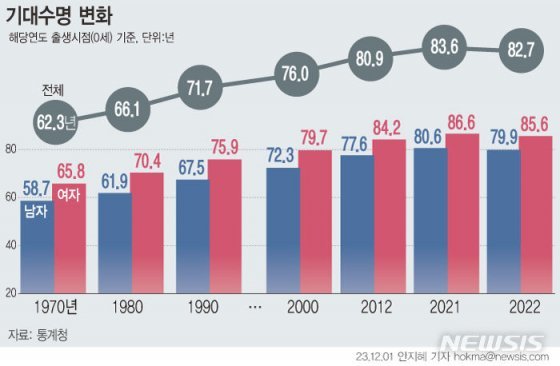 ◆2022년생 기대수명 82.7년…1970년 이래 최초 감소