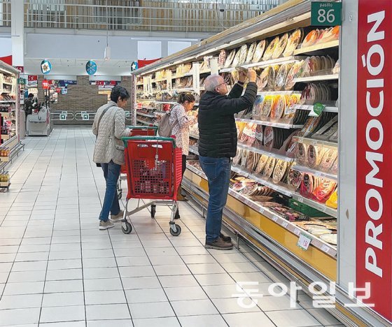 지난달 20일(현지 시간) 스페인 마드리드 교외 레가네스에 위치한 한 대형마트에서 시민들이 장을 보고 있다. 이날 만난 하비에르 레투에르타 씨(30)는 "물가가 2배는 올랐다고 느낀다. 주변에는 자녀 갖는 것을 미루는 경우도 있다"고 말했다. 마드리드=김수연 기자 syeon@donga.com“남편이 매달 벌어오는 돈의 40%를 주택담보대출 갚는 데만 쓰고 있으니 전시(戰時) 상황이 따로 없습니다. 허리띠를 졸라맬 수밖에 없어요.”