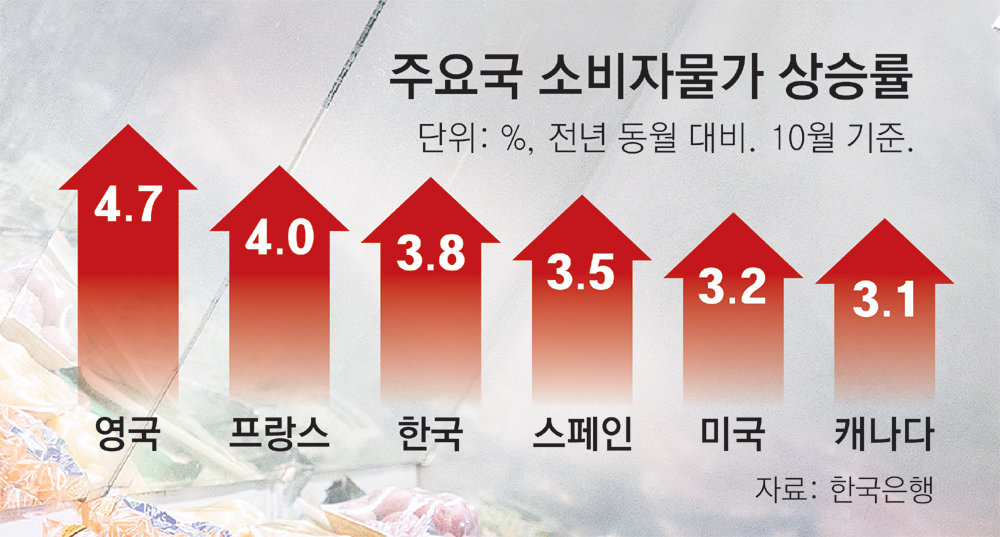 6월 9.1%로 1981년 이후 최대 폭을 보인 뒤 올해 10월 3.2%까지 하락했지만 생활 물가는 여전히 높은 수준을 유지하고