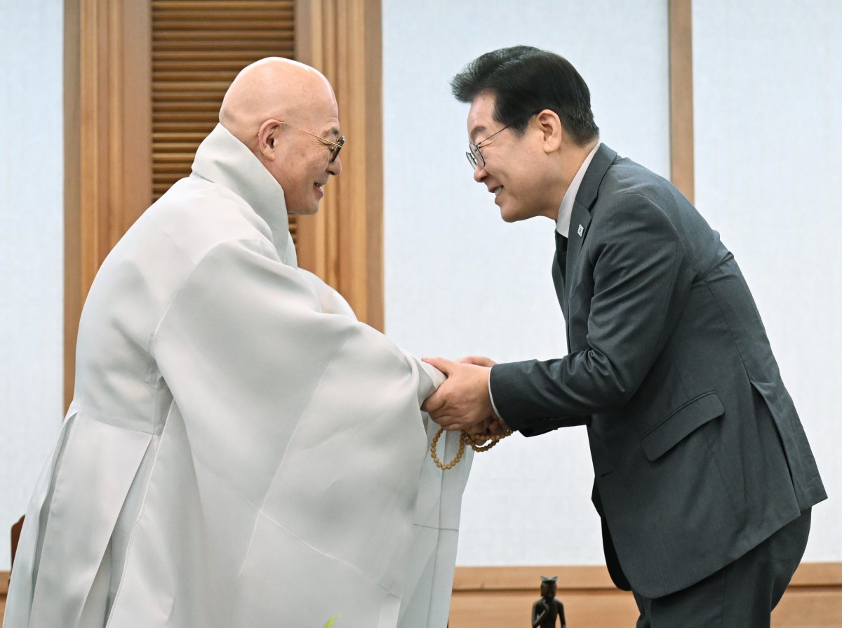 진우스님은 이재명 후보에 “무엇보다도 국민의 삶을 가장 먼저 생각하는 국정 운영으로, 무너진 신뢰를 다시 세워주시기를 간곡히 당부드린다”며 “선거 기간 동안 귀 기울인 국민의 다양한 목소리를 국정에 충실히 반영해 주시리라 믿는다”고 말했다.