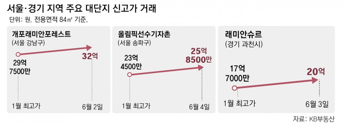 서울-경기 주요 대단지 新고가 속출… 기준금리 하반기 추가 인하 가능성