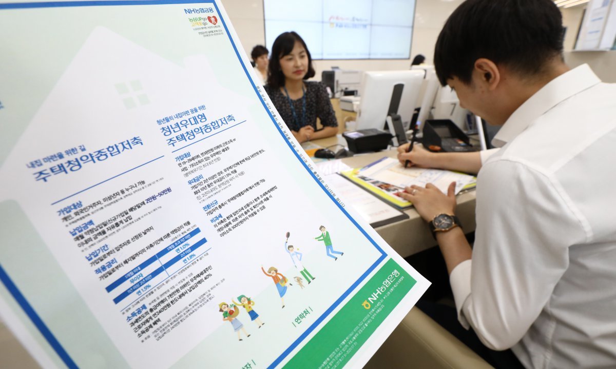 ‘청년우대형 주택청약종합저축통장’이 출시된 31일 서울 중구 NH농협은행 본점영업부에서 한 청년이 주택청약저축 가입 신청서를 작성하고 있다. 청년우대형 주택청약종합저축은 청년층을 대상으로 10년간 연 최대 3.3%의 금리와 이자소득 비과세 혜택을 제공하는 상품이며, 주택청약 조건 및 소득공제혜택은 기존 주택청약종합저축과 동일하다. 2018.07.31. 20hwan【서울=뉴시스】