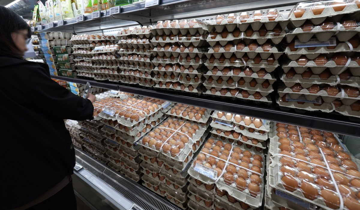 23일 서울 시내 한 대형마트에서 소비자들이 계란을 고르고 있다. 23일 한은이 발표한 지난달 생산자물가지수는 120.24(2020=100)로 전월(120.36)보다 0.1% 하락했다. 지난해 10월(119.01) 0.1% 떨어진 이후 반년 만에 하락세다. 전년동월대비로는 0.9% 올랐다. 양파와 오이값이 크게 하락했다. 다만 돼지고기와 달걀 값은 크게 올랐다. 생산자물가는 생산자가 시장에 공급하는 상품과 서비스 등의 가격 변동으로 품목마다 통상 1~3개월 시차를 두고 소비자물가에 반영된다. 최근 추세를 살피기 위해 주 지표로 전월대비 수치를 사용한다. 2025.05.23. 서울=뉴시스
