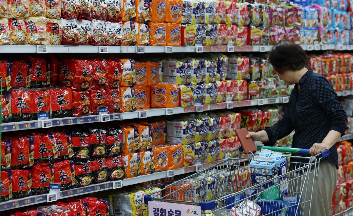 2일 서울의 한 대형마트에서 시민이 라면을 살펴보고 있다. 소비자물가지수가 한 달 만에 2%대로 올라서며 지난 1월 이후 가장 높은 수준을 기록했다. 통계청이 발표한 ‘6월 소비자물가동향’에 따르면 지난달 소비자물가지수는 116.31로 전년 동월 대비 2.2% 상승했다. 특히 축산물(4.3%), 수산물(7.4%), 가공식품(4.6%), 외식(3.1%) 등 먹거리 가격이 전반적으로 크게 올랐다. 2025.07.02. [서울=뉴시스] 정부와 여당의 강력한 물가 안정 동참 강조에 식품업계의 고심이 깊어지는 모양새다. 제품 가격에 원·부재료와 가공비 상승 요인을 제때 반영하지 못하는 현실 속에 되레 인하 압박을 받고 있다는 이유에서다.