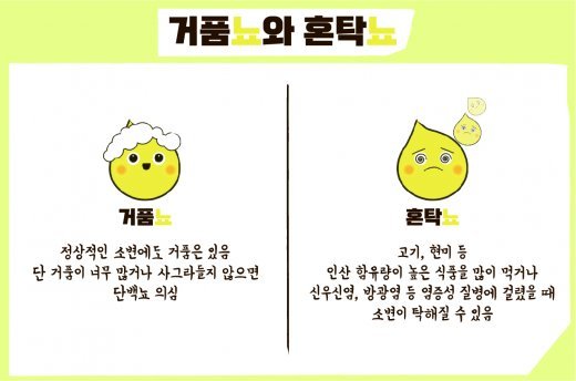 정상적인 소변도 거품이 생길 수 있습니다. 하지만 정상적인 소변의 거품은 많지 않고 오래 지속되지 않습니다. 마치 비누를 풀어놓은 것처럼 거품이 많이 일어나거나, 거품이 사라지지 않는다면 단백질 성분이 소변으로 빠져나오고 있다는 신호이므로 소변검사를 받아야 합니다. 단백뇨는 신장에 문제가 생겼다는 것을 보여주는 간접적인 신호입니다.