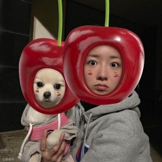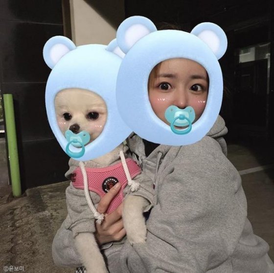 윤보미는 어플을 이용해 다양한 스티커를 붙이며 숭늉이와 함께 셀카를 찍고 있다. 어떤 스티커든 완벽하게 소화해내는 귀여운 둘의 모습이 눈길을 끈다.