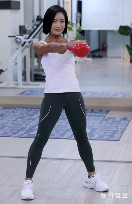 김금자 원장이 케틀벨 스윙을 선보이고 있다. 이훈구 기자 ufo@donga.com