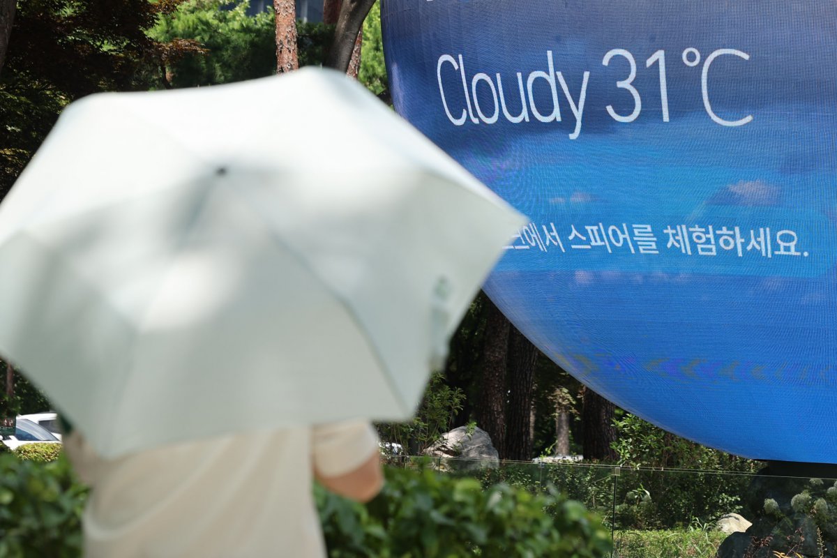 전국 대부분 지역에 폭염특보가 발효된 21일 오후 서울 송파구 한 조형물에 현재 기온이 표출되고 있다. 2025.07.21. [서울=뉴시스]서울을 비롯한 주요 지역의 낮 최고 기온이 36도까지 오르는 찜통 더위 속에서 더위를 유독 잘 타고 땀이 많이 나는 사람들이 있다. 갑상선에서 갑상선 호르몬이 과다 분비되는 갑상선 기능 항진증 환자들이다.