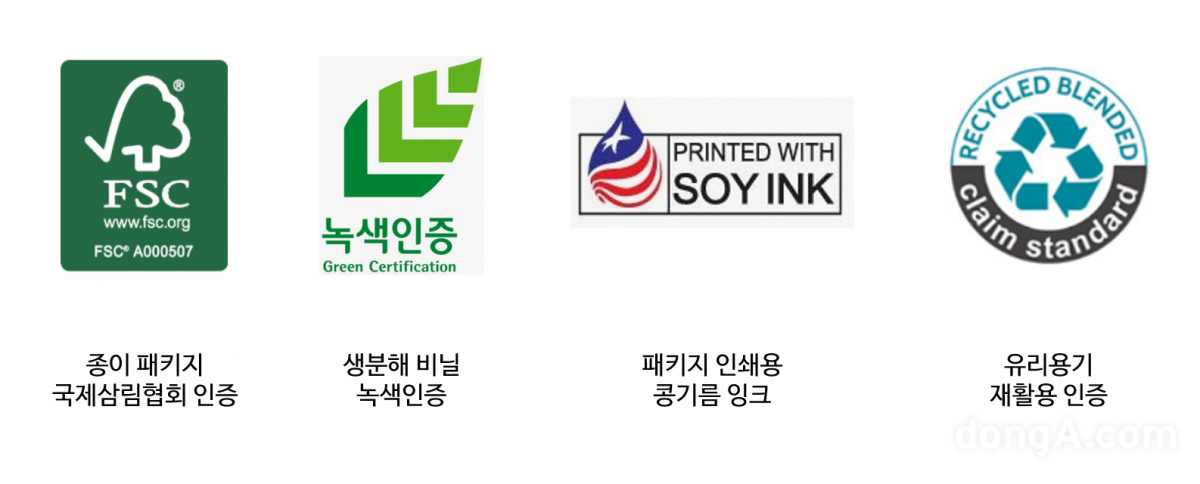종근당건강은 제품 포장을 생분해 소재로 전환하는 등 친환경 경영에 앞장서고 있다. 사진은 종근당건강이 획득한 친환경 경영 인증.김민범 동아닷컴 기자 mbkim@donga.com