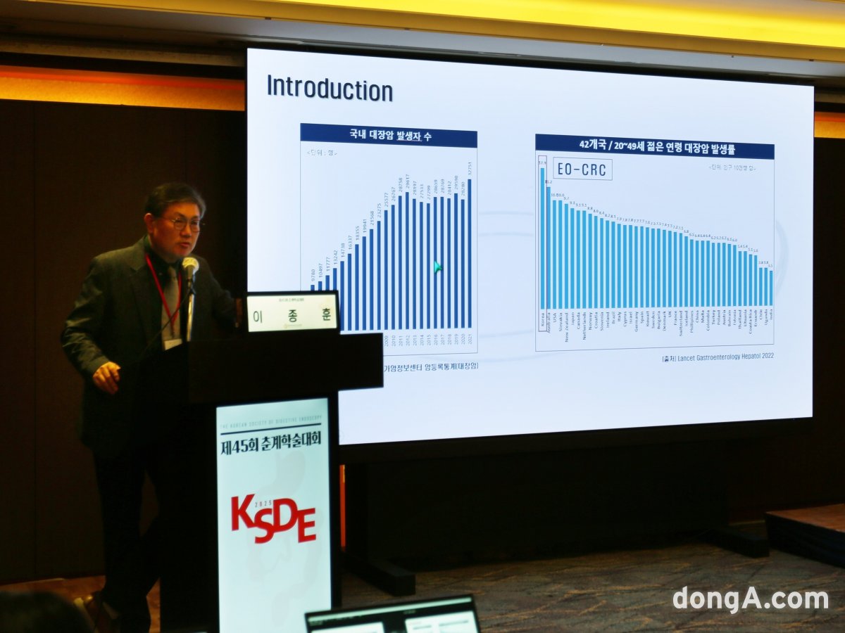 이종훈 동아대병원 소화기내과 교수가 제45회 대한위대장내시경학회(KSDE) 춘계학술대회 런천 심포지엄에서 원프렙1.38산의 특장점과 환자 복약순응도 개선 효과를 발표하고 있다.임상 결과에 따르면 80% 넘는 복용자가 복용 과정에서 어려움을 겪지 않았고 98.4%가 재복용을 희망했다.